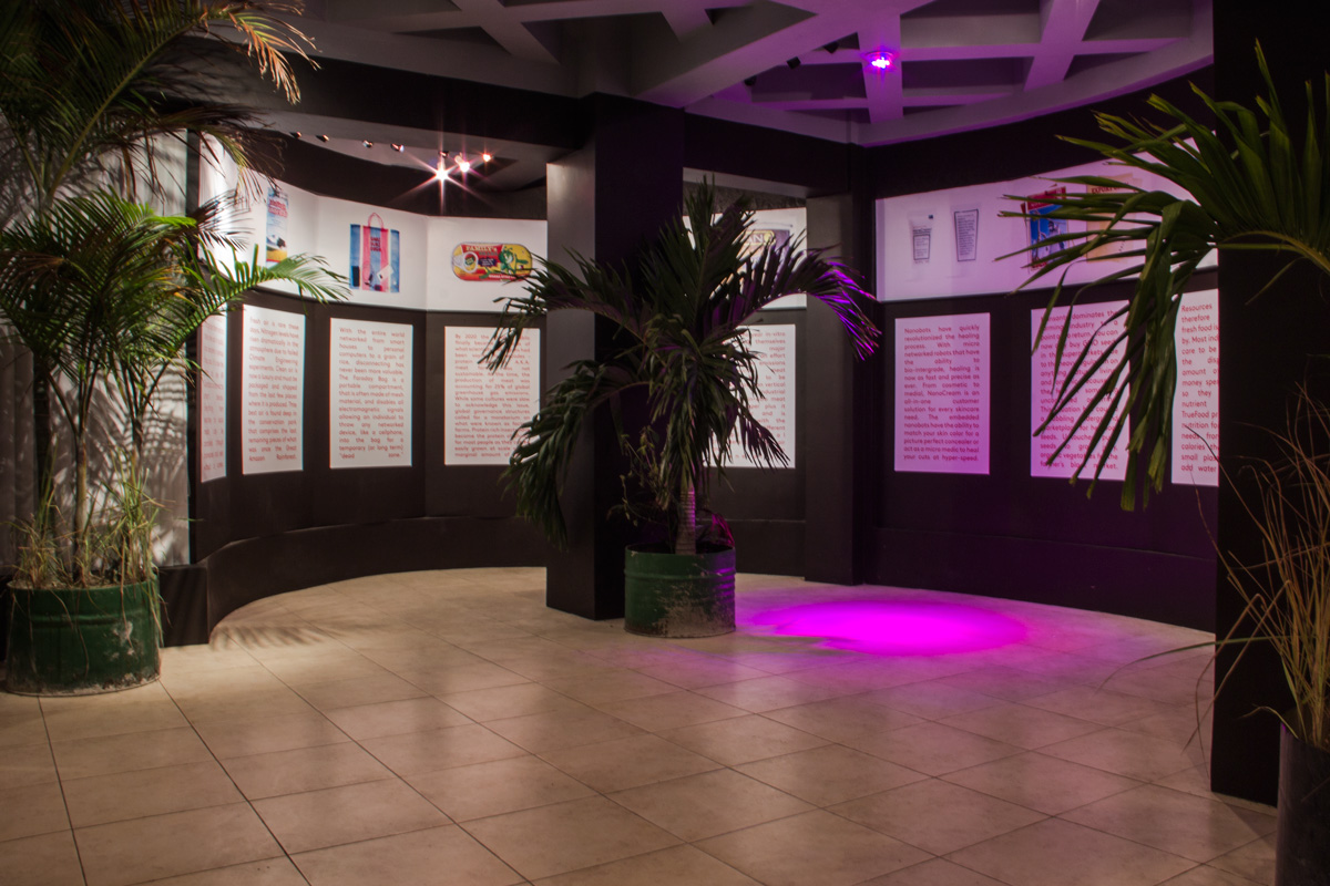 SARI SUKI 2050 is a design futures exhibition and an interactive installation that explores tropical futures through a neighborhood convenience store.